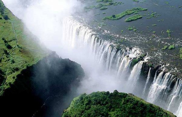 Пожалуй всем известен водопад Виктория, названный в честь королевы великой и могучей старушки Британии. Он является единственным водопадом в своем роде, общая длина коего составляет больше километра. Высота же падения его вод — свыше ста метров, а шум брызг и плеск его вод слышен аж за 40 километров.